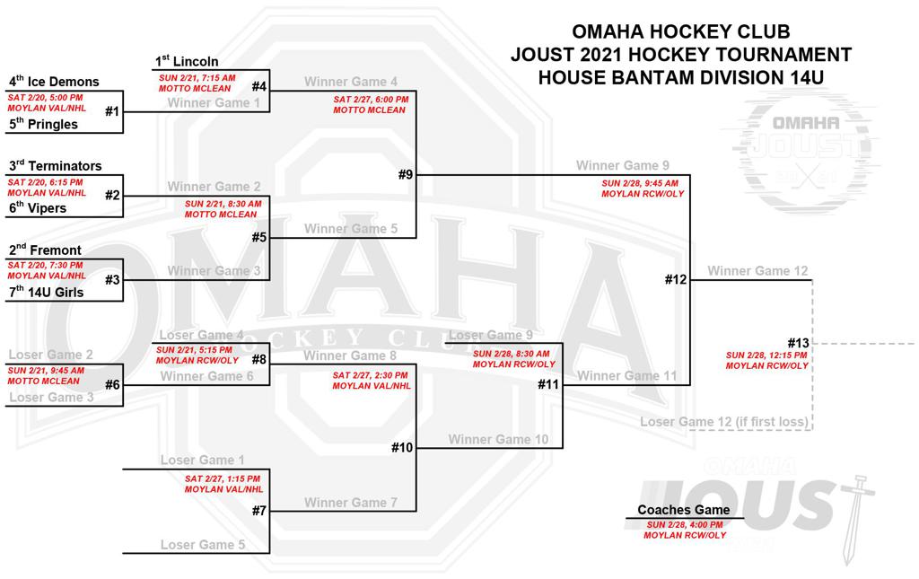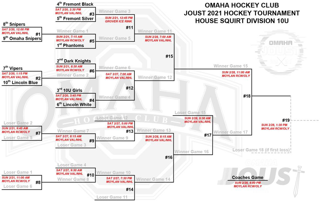 - Squirt-Bantam House League Tournament will take place Feb 20-21 & Feb 27-28. Brackets for this tourney are attached and can be found on your team homepage