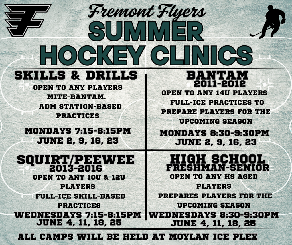 The Fremont Flyers Hockey program will be running the following camps during June at Moylan Ice Plex to help keep players in shape and ready for the upcoming season-